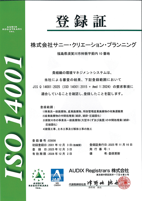 JIS Q 14001:2015/ISO 14001:2015の要求事項に適合