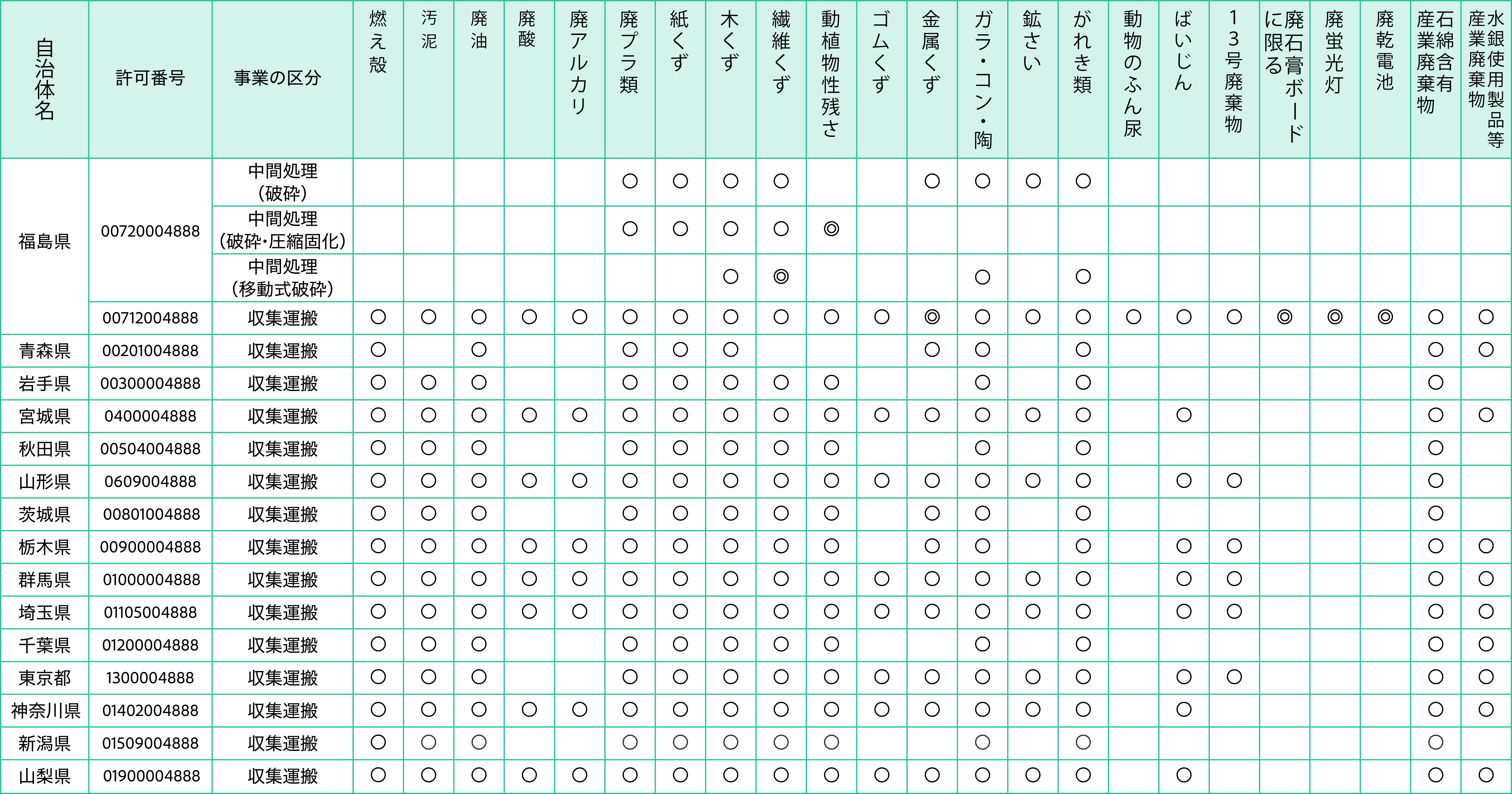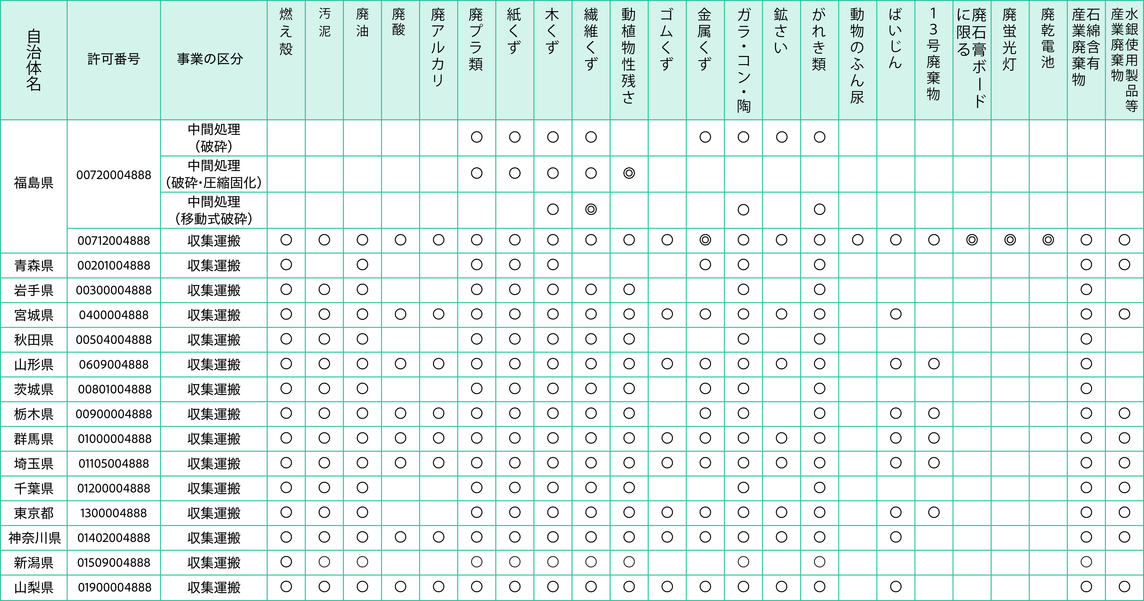 [産業廃棄物処理業(中間処理/収集運搬) 許可一覧]