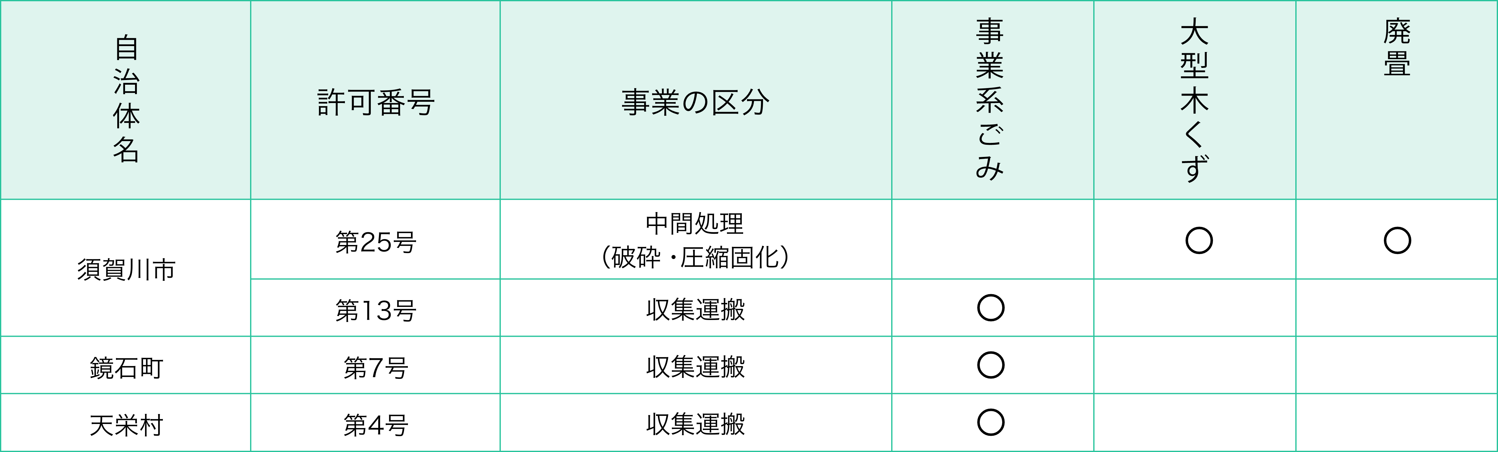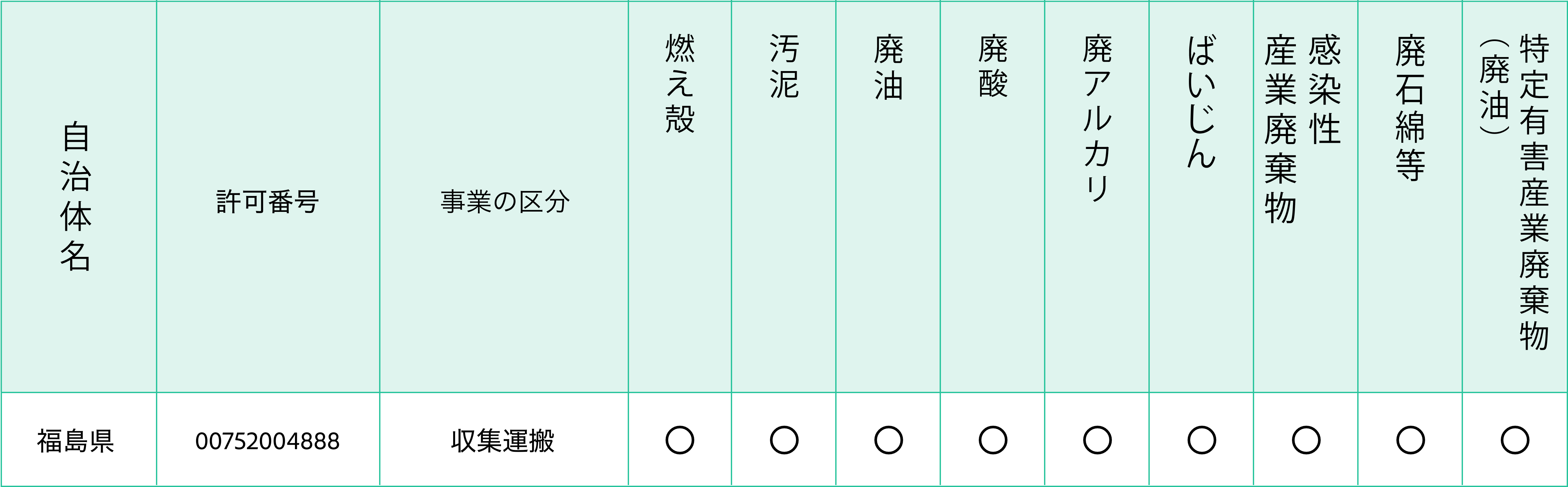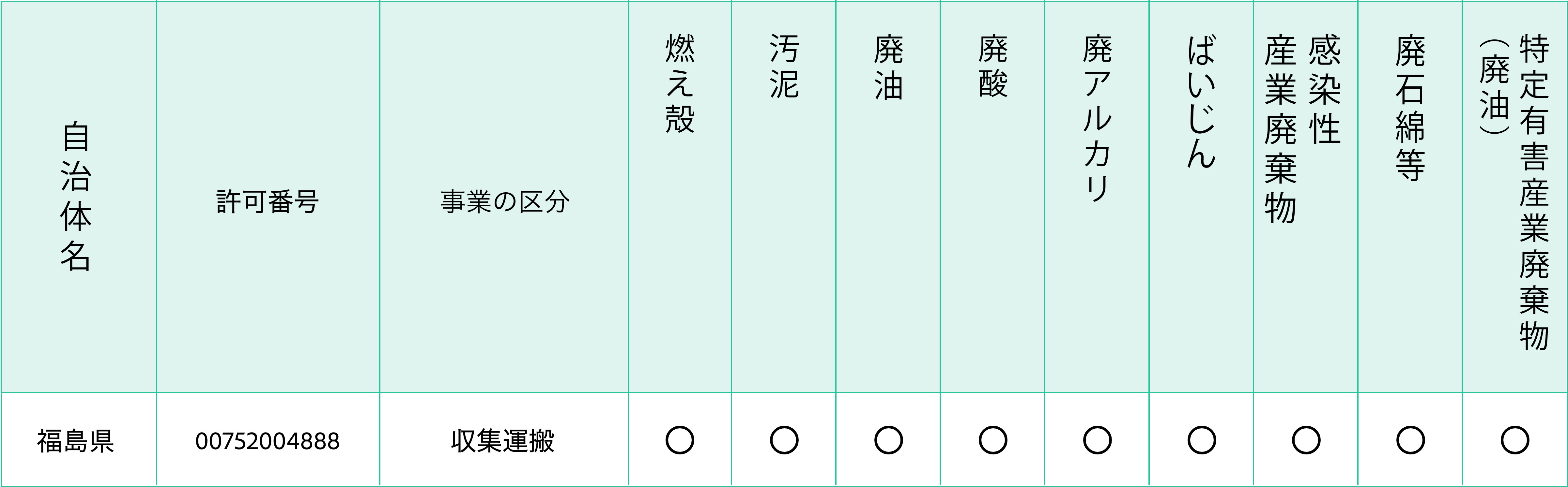 登録範囲 1)事業系一般廃棄物、産業廃棄物の収集運搬業